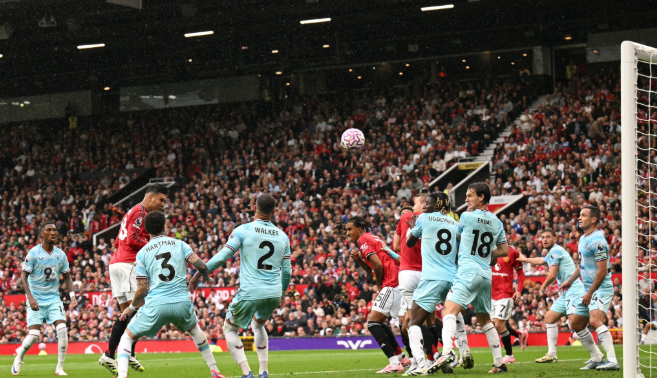 第62分钟,姆伯莫角球直接平地抽到弧顶处,B费摆腿推射,皮球滑门而过,曼联再次错过进球机会;而往往浪费机会就容易受到惩罚;第66分钟,沃克边线球掷入禁区,埃斯泰夫与福斯特连续头球摆渡,巴因迪尔勉强扑出了沙乌纳的射门,杰登-安东尼门前补射再次扳平比分,2:2!