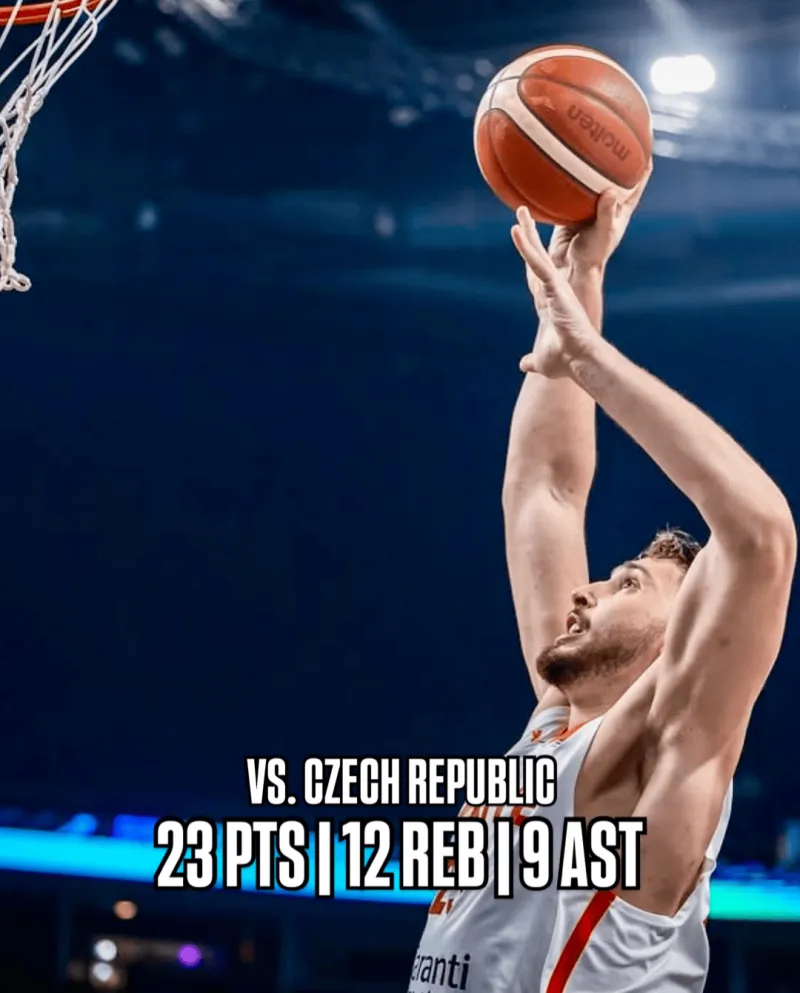 对阵捷克:23分12篮板9助攻