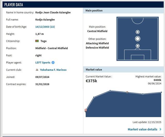 1 月 9 日傍晚,作为中超联赛四冠王的上海海港官宣,之前效力日本 J 联赛横滨水手的防守型后腰、22 岁的多哥国脚,以租借方式加盟。这位防守能力突出的非洲 “黑又硬” 兽腰,完全匹配海港的战术体系,也能很好填补巴西后腰茹萨离开留下的空缺。不过,很多海港球迷在社交媒体抱怨吐槽:“堂堂中超三连冠的豪门球队,海港怎么就买了个身价只有 37.5 万欧元的便宜货,是不是不想卫冕了?”